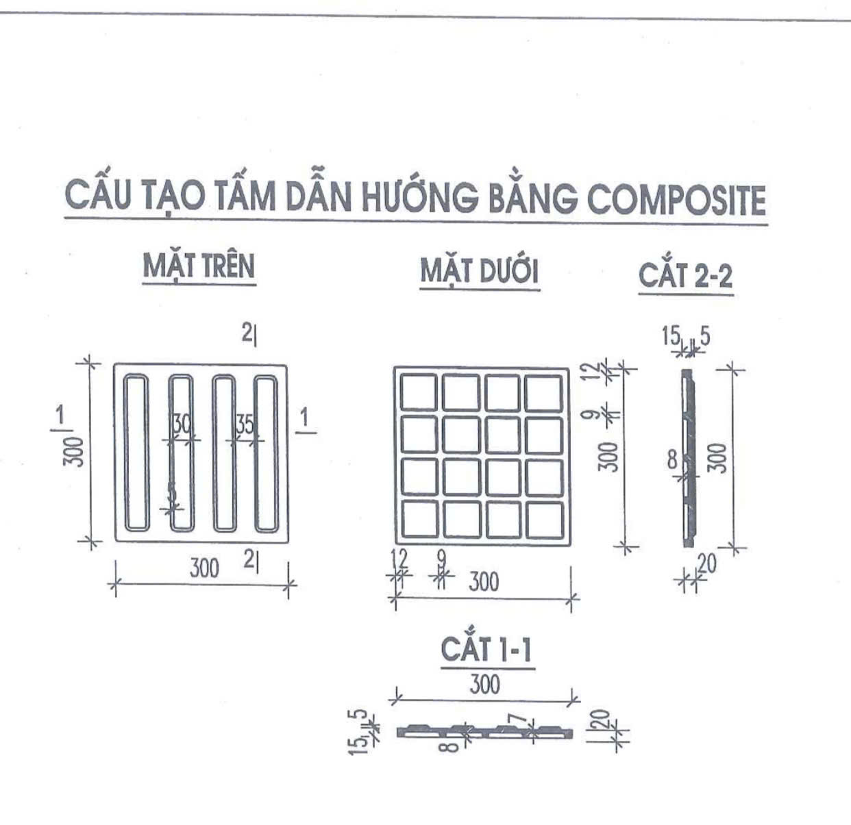 Gạch dẫn hướng composite là loại gạch chuyên dụng có bề mặt được thiết kế đặc biệt với các gờ nổi để người khiếm thị có thể cảm nhận bằng chân hoặc gậy dò đường. Sản phẩm được làm từ vật liệu composite cốt sợi thủy tinh (FRP), giúp gạch có độ bền cơ học cực cao và chống chịu thời tiết tốt.Theo Quy chuẩn kỹ thuật Quốc gia