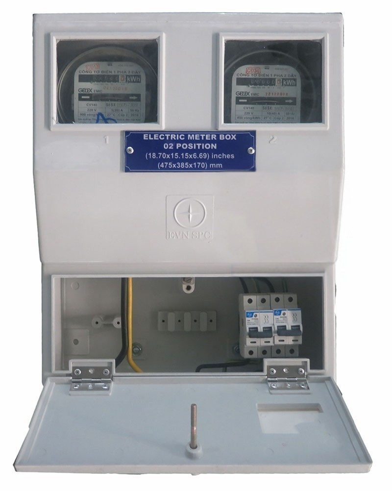 | 475 × 385 × 170 | Lắp 2 công tơ điện 1 pha + CB/MCB |
